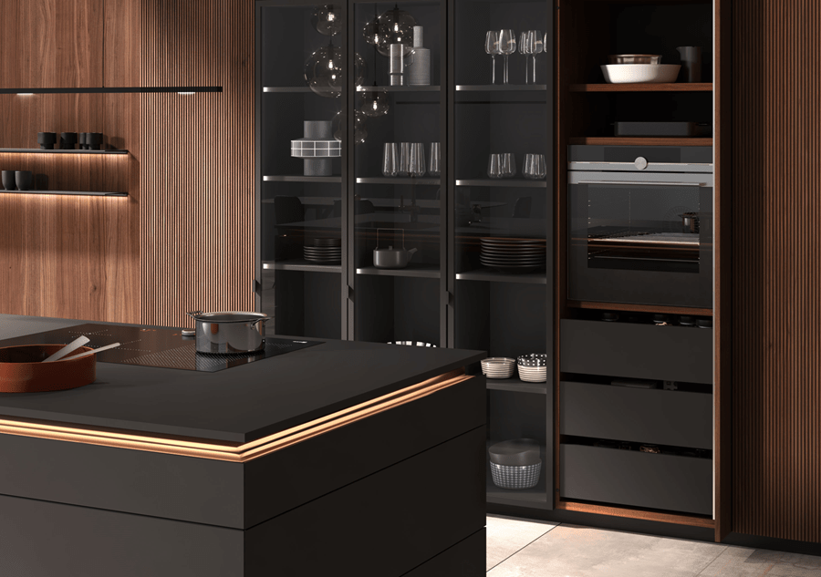 LEICHT Living repense la frontière entre cuisine et salon. Des lignes architecturales, des matières nobles et des solutions de rangement intelligentes créent un espace cohérent, ouvert et chaleureux. L’objectif: un lieu de vie où l’on cuisine, reçoit et se détend, dans une atmosphère à la fois contemporaine et intemporelle.